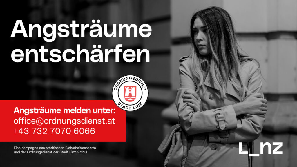 Gemeinsam mit dem Sicherheitsressort der Stadt Linz wollen wir Angsträume erkennen und entschärfen – also Orte, an denen sich Menschen unsicher fühlen. Jede Meldung hilft uns, gezielt zu handeln und das Sicherheitsgefühl in Linz zu stärken.